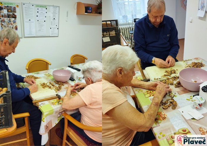 O víkendu se klienti pustili do tradiční podzimní činnosti – loupání ořechů. A i když se to může zdát jako drobnost, právě takové aktivity mají pro seniory velký význam. Pomáhají procvičovat jemnou motoriku, udržovat soustředění a zároveň přinášejí radost z dobře odvedené práce. Takové chvíle jsou důkazem, že i obyčejné činnosti mohou být skvělou aktivizací – přinášejí pohodu, vzpomínky i pocit sounáležitosti.