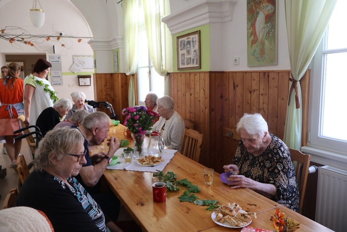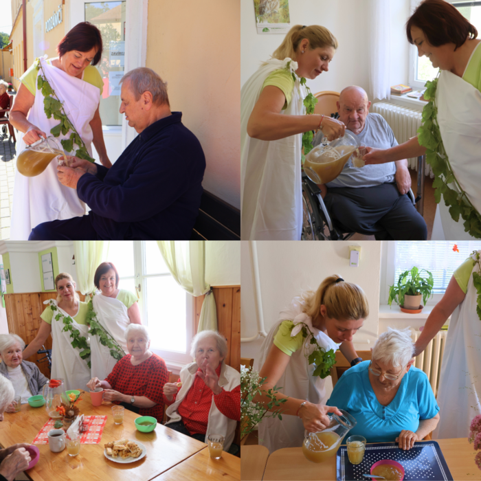 Ve čtvrtek u nás proběhla oblíbená ochutnávka burčáku. Klienti se sešli v jídelně, kde společně poseděli, popovídali si a připili si sklenkou tohoto podzimního nápoje. K burčáku si také sami upekli slané pečivo, na kterém si všichni moc pochutnali. Atmosféra byla velmi příjemná - nechyběl smích a dobrá nálada.