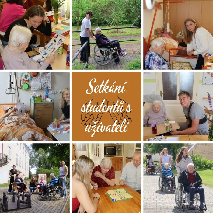 V pondělí 26. 5. 2025 přijeli studenti SZŠ Znojmo na prohlídku naší organizace. Na úvod byli seznámeni s prací zdravotní sestry v organizaci. Po malé přednášce se studenti provedli po areálu. Poté se rozdělili na skupinky na jednotlivá oddělení. Studenti si s uživateli povídali na pokojích, hráli v kavárně různé deskové hry, malovali nebo doprovodili uživatele do parku, kde si zahráli kuželky. Před obědem pomohli zaměstnankyním doprovodit uživatele na společnou jídelnu. Všem se dopoledne strávené ve společnosti studentů líbilo. Všichni uživatelé byli nadšeni a spokojeni. Děkujeme paní učitelce a studentům za zpříjemnění volného času.