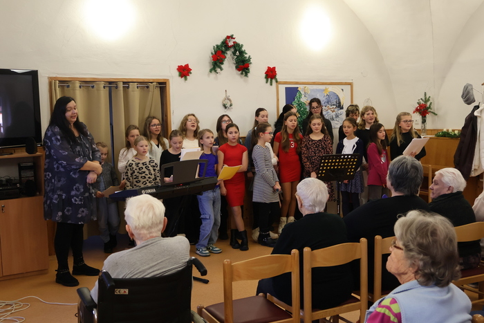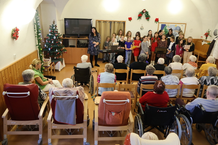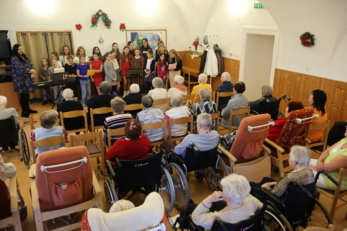 Dnes jsme přivítali mezi nás žákyně ze Základní školy Kravsko, které nám předvedly nádherné pěvecké vystoupení. Jejich repertoár byl zaměřen na vánoční písně, které navodily příjemnou a sváteční atmosféru. Žákyně svým zpěvem okouzlily všechny přítomné a přenesly nás do kouzelného světa Vánoc. Jejich nadšení a talent byly patrné v každé písni, kterou zazpívaly. Uživatelé našeho zařízení si vystoupení velmi užili a odcházeli s úsměvem na tváři a s pocitem radosti. Děkujeme žákyním a učitelkám ze ZŠ Kravsko za jejich krásný výkon a těšíme se na další podobné akce.